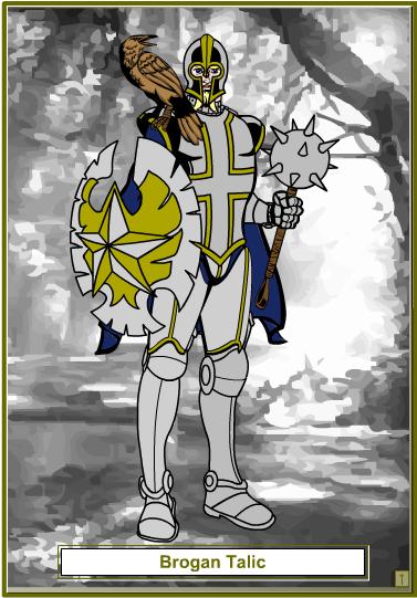 Brogan Talic: Brogan is a Knight of the Iron Fist (see the 'Prestige Classes' page), one of the travelling clerics of Etrusca who actively seek out enemies of their deity and practice his justice on them. He originally joined the party in the hope its path would lead him to Gan. Now that Gan has been defeated there are many other enemies who need Etrusca's justice...