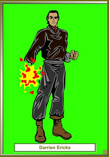 Darrien Erricks: Darrin is a wizard who recently joined the party. He does not talk about himself, though his appearance and style of dress are foreign to Chandreskahr and he speaks with a clipped accent. His magic is in enigma to the rest of the party as well; he appears to summon raw energy and shape it into a number of effects instead of using traditional incantations.