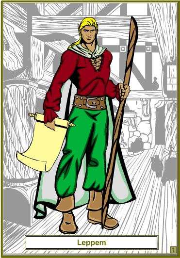 Leppem: A full blooded elf, Leppem hails from the elven city of Findanye. He travels to learn, and is collecting information on magic he encounters that is different from his own. Leppem was recently slain in battle with Gan and resurrected by clerics of Etrusca in Chandreskahr. The process left a dark brown mark in the shape of a gauntlet covering half of his back, but Leppem currently has no plans to convert.