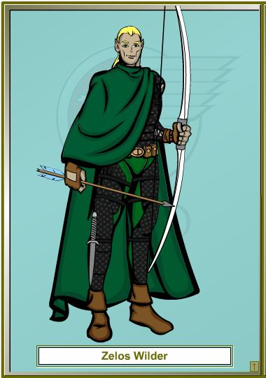 Zelos: Zelos is a ranger who makes his home well outside the village itself. His vigilance and skills have warned Highfork of danger many times and noone knows the surrounding area as well as he. A half elf, he is unassuming and keeps a watchful eye out at all times. His aim and speed with a longbow have become legend across Chandreskahr Barony. INACTIVE: Zelos returned to Highfork to investigate rumors of a goblinoid army forming in the mountains at the northern border of Chandreskahr.