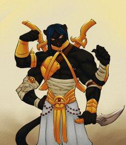 Fayde: Fayde (as he is known by the party) joined the party during their trek across the Sa-Tathenen Ra. He is of Guarrashi blood, a feline race of extradimensional origin. Though not a full-blooded Guarrash (his tribe's ancestors settled on the plane of Vinifera centuries ago) his combat and spellcasting skills are formidable. He is currently wandering to seek knowledge and enlightenment, and joined the party to that end.