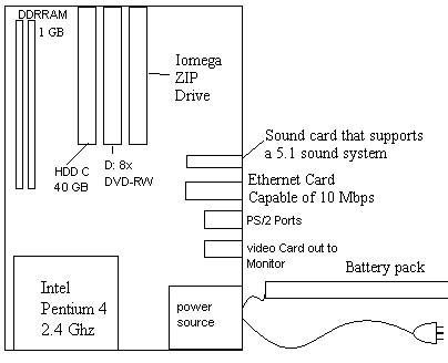 | My dream machine would would have enough space for gaming, ripping and storing .MP3's, and for storing webpages that I'm working on. | I obviously plan on creating websites on my own time. After work or when I need to have a break I could use it to entertain myself. | I would like to have my computer to be portable so that when I went up to Tahoe or to Hawaii in my private jet that I could work on any projects that I had. |