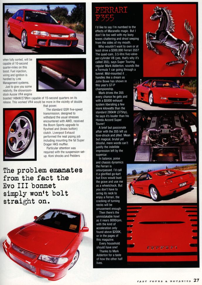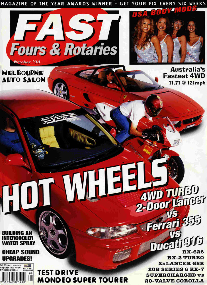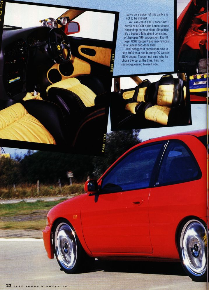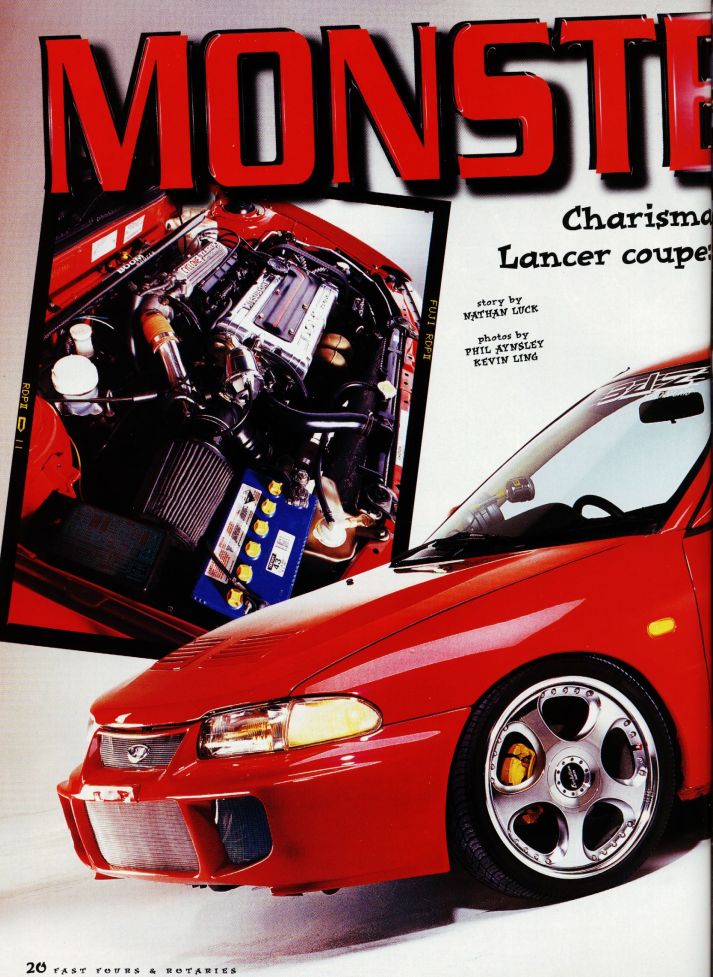 1ST AWD COUPE Back in 1998, Hilal Sayed from Sydney (with the help of BAZ Motorsports) built the first ever AWD Lancer coupe in Australia (possibly even the world considering the Proton didn't hit Malaysia until 1997). What they achieved was simply amazing and it totally changed the way people looked at modifying the coupe from then on. Little did they know at the time, that they had inspired a new breed of AWD terror to run along side the popular Lancer GSR and EVO models. This is the car Mitsubishi should have built - A sporty AWD coupe... This car is not in existence anymore. Shortly after the photo shoot above for Fast Fours & Rotaries Magazine in October 1998, the vehicle was involved in an accident outside BAZ Motorsports... It was a write-off!
