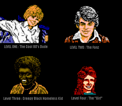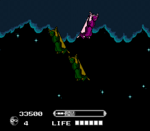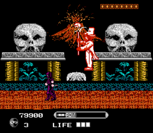 Number of Levels: Four and each jam packed with its very own child, boss, and Red Man. The levels are all pretty repetitive, but they have their moments. Like in the second level, where you take to the air to battle what appear to be evil flying crucified ninjas. And by “have their moments,” I mean that I just said the only redeemable quality of this game.