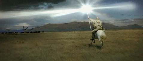 Gandalf takes Pippin off to some lame ass city. I hate Pippin. I hate Merry. I hate every fucking Hobbit in the universe. Hobbits fucking blow. Anyway they show up at this city of Gondor where there’s a bastard who doesn’t want the RETURN OF THE KING. Great. Gondor can’t hold some city on some river any longer, so they flee like cowards. Gandalf comes out to help them, bringing Pippin along, my guess is because Gandalf is a fag who likes Hobbits as his sex slaves. He points light at some dragons, that are fucking boss, who are fucking up the troops. That’s right. Light. My brother dubbed this the Flashlight Attack, and rightly so. Gandalf doesn’t do any more magic for the rest of the movie. Which means, as far as I’m concerned, Gandalf uses magic five times during the duration of the three movies.