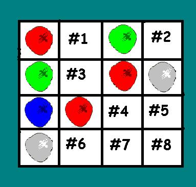 This is Codestone Conundrum. Neomail terry_canyon with answers. If you get it right your earn your team 4 pts. And you get a Prize. Note: No two colors can be in the same row or column.