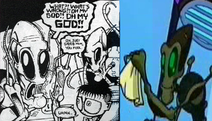 Prior to developing Invader Zim, Jhonen Vasques worked on a number of different comic books including Johnny the Homicidal Maniac and Squee. Occasionally one of the characters from his comic books makes a cameo appearance in the series. Filler Bunny