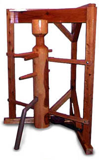 | The correct use of strength also emphasised on the dummy. Most Wing Chun students will accept that it will not always be possible to be bigger, heavier, stronger or more aggressive than an opponent, and as such enormous disadvantages could result. But with the correct use of power some of these potential imbalances can be overcome. A framed dummy allows the trainee to use explosive power and to literally 'bounce' the dummy using a spring like action. This type of strength is very hard to combat in a fight and results in an ability to use the opponents strength to your advantage, and to withstand heavy onslaughts from a pressing opponent. |