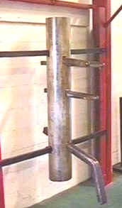 | The dummy is made of hardwood and as such the practitioner will never 'beat' the dummy in a strength test. If a practitioner insists on conditioning their arms by hitting the dummy then they miss the correct use of this piece of equipment. 'Pak Jong' is the term often used as an expression to describe the way in which a poor practitioner of Wing Chun slaps the dummy about. | ![]() |