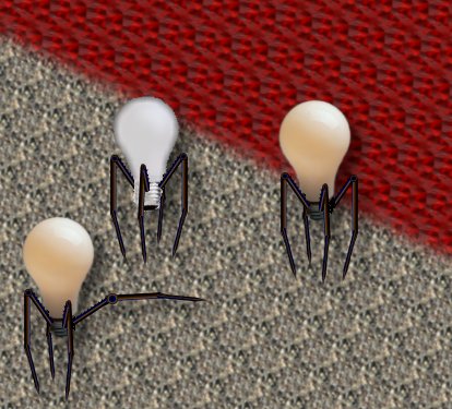 Bulb Crawlers Height: 4 inches max. Legs protrude from body though. Found: These were my defense against the late Lord Ali. These originated from the home of Gary Coleman, Midget King of MadLand. Now only found in King Gary's home and in my lair. Defense: Blinding light and exploding bulb. Very useful for suicide missions. Offense: undisclosed. Other: These are not real animals and actually machines. But make great use of AI. (Artificial intelligence)