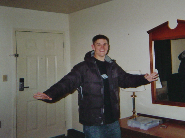 Here we see our super hero at an airport terminal, alot of traveling goes into the Army.