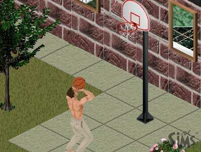 | The next day, meeting over, Dirk gets a work out while shooting some hoops. Sweating is one of Dirk's ways of releasing stress. And right now he is stressing over not being able to play 'cops and robbers' with those chicks last night! |