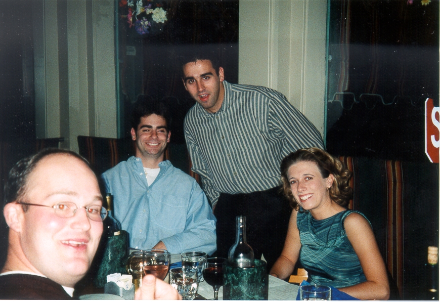 I love this shot of Law What is Ricca doing to me? Chip is awfully red. Where is Jill's other hand? Perhaps clinging the glasses at Heidi and Sean's wedding will start a new tradition...Lemos looking on, enjoying the "action."