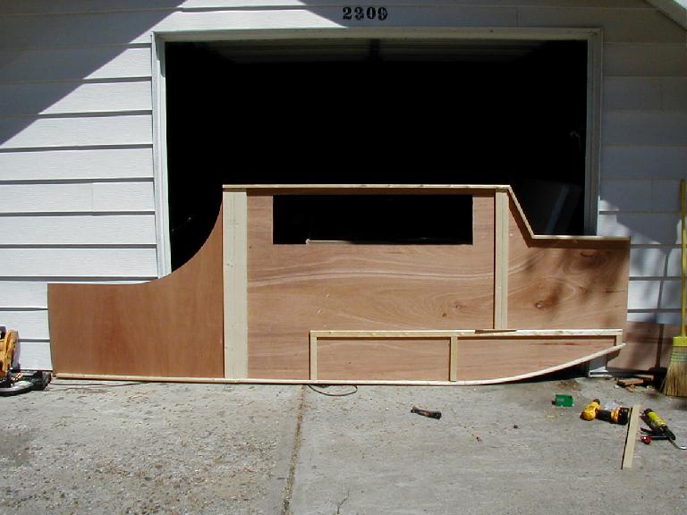 After about 1.25 hours, framed in the bunk, and also cut the window opening and put in some stiffening stuff. I am documenting one side only, as the other side is in the garage, with just the butt joint done. All of the pieces of the boat will be framed separately, then painted, sealed with silicone and screwed together. Remember, THIS one has to come apart again.