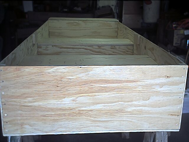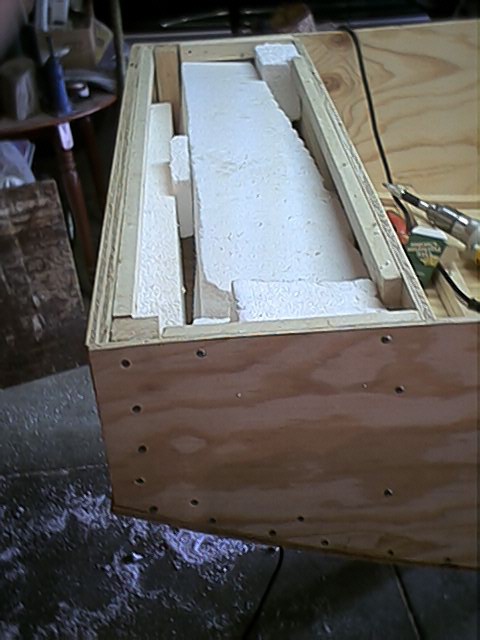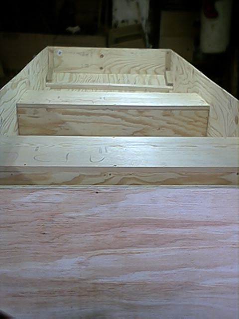 Anyways, this past weekend the building was completed! We framed the seats and filled them with eps foam, then boxed in the bow, filling it with foam also. After that we attached the rub strips and I began applying the epoxy. I made the mistake of not buying a filler for the epoxy, so I have to fill some gaps next weekend and complete the finishing process. So, with any luck, I will be in the water in 2 weeks.