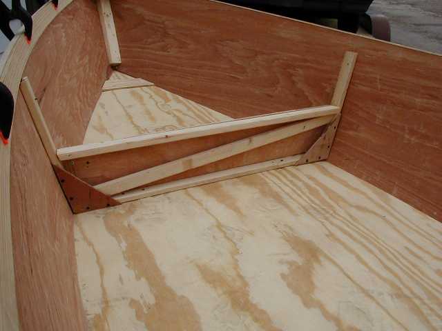 Knees are leftover 3/4" ply. Note buttblock and space on top. This is for inwale/stiffener. Transom doubler is not yet installed.