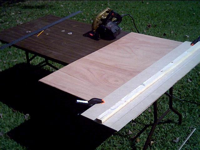 I built two simple jigs for cutting plywood-- I can't saw a straight line