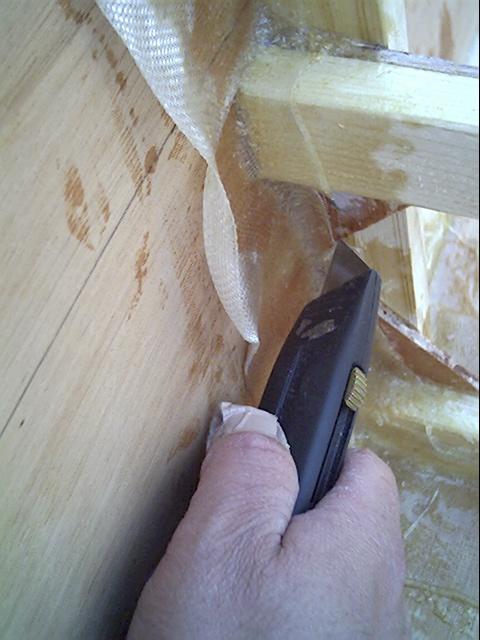 with trash bags confiscated from the kitchen so the plywood won't be permanent