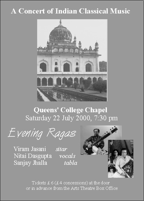 Viram Jasani and Nitai Dasgupta will be performing ragas in alternation. There will be an intermission. The