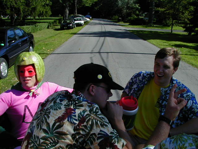 :: Melon Man being escorted by his secret Melon Service agents