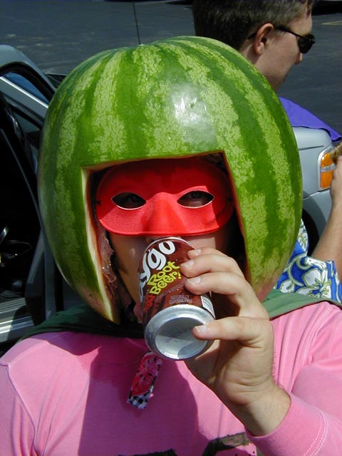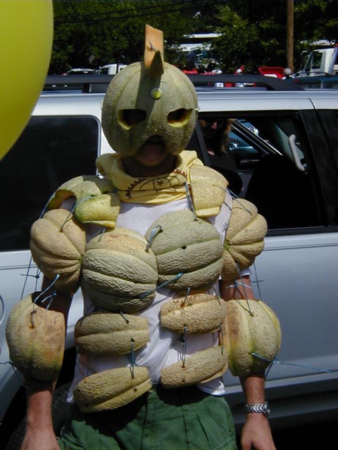 The completed cantaloupe suit...uhhh, you're a bit lopsided in the chesticle area