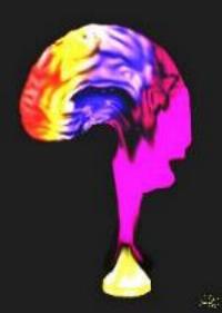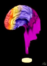 The idea was then to convert the image of the brain to a reverse silhouette, which could be pasted over the rainbow using simple computer software. After playing with this idea for a while it was decided to leave the brain texture in and a rough colouring plan developed ( Fig.2. )