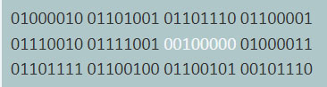 | R | 1010010 | r | 01110010 | , | 00101100 |