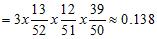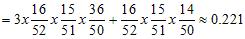 8. Four cards are drawn from a pack of 52. Find the chance of there being