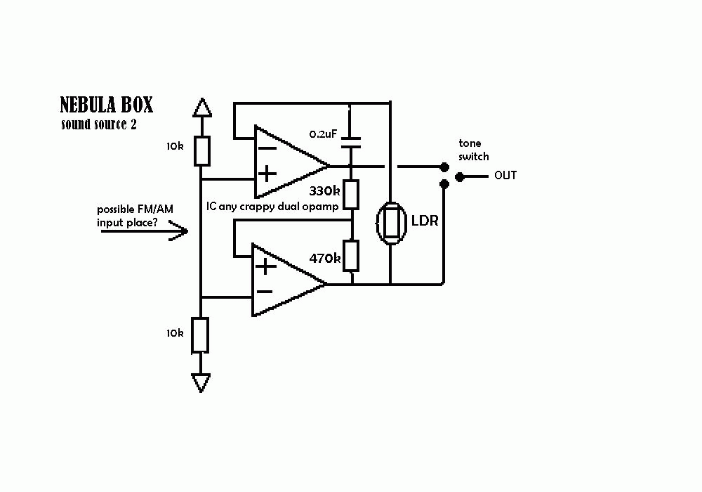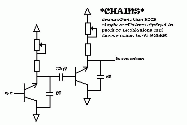 A very simple dual oscillator noise-thang. Theres no values on the parts,