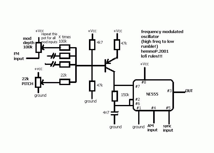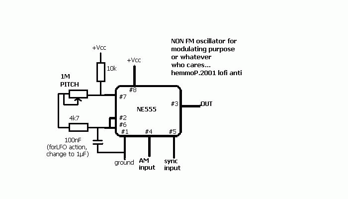 Another noise-thang, using 555 timer as frequency-modulated oscillator.