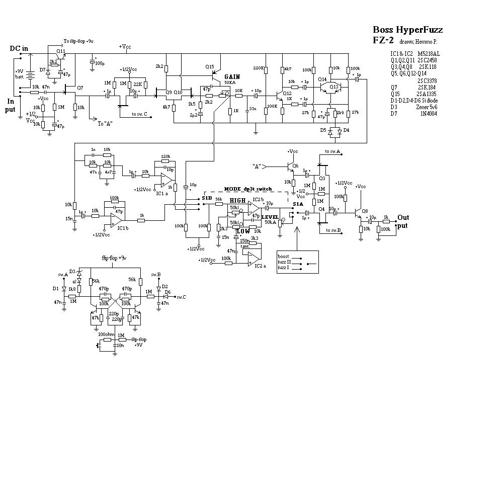 Note that the Buzzbox uses schkottky diode in the first stage, which gives it its unique octave-up fuzz-sound. I like.