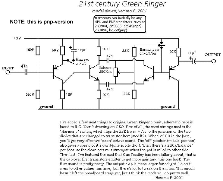 Or something. A modded Green Ringer, has a fuzzbox switch and octave-mode switch. Nice.