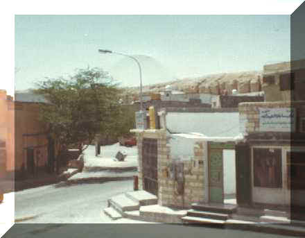 احد شوارع القرية قديماً ويبدو في الصورة الأخ علي سلمان وهو يسك شيئاً