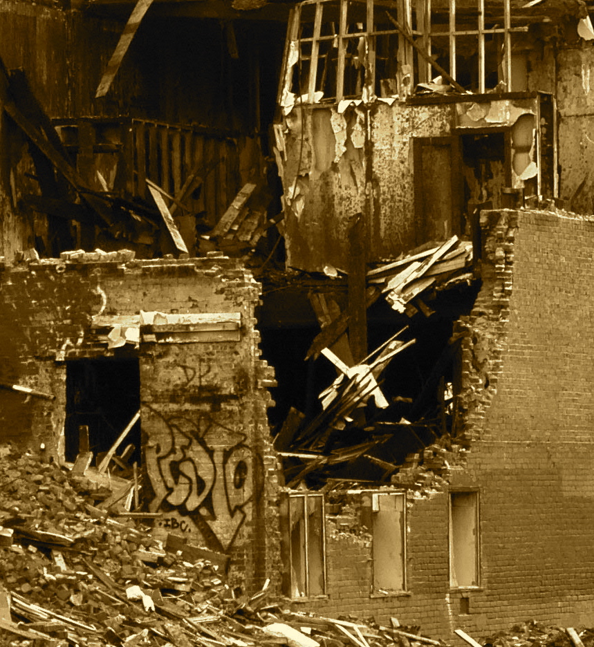 Grafiti and Rubble This fire was a real tragedy. The photo was taken from the street in Canada's oldest China town.