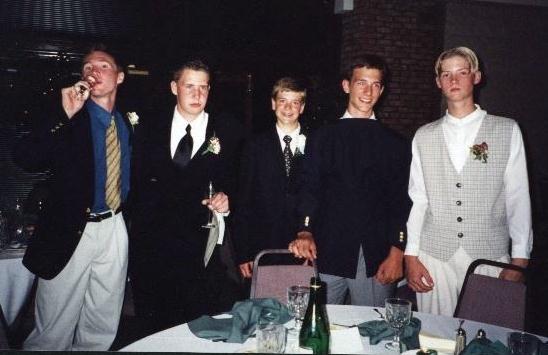 Once when were in the tenth grade, Eric was a little depressed. It was the last day before Christmas break and we were all chillin and getting ready for the last chapel. We were trying to figure out the best way cheer up Eric. We decided to hit him on the back as hard as we could and sing a song. We sang "Eric is Out Bestest Friend" over and over and over as we beat him mercylessly. I can't really say it cheer Eric up too much, but it did leave a few "happy" red marks on his back...