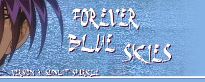 Welcome to Forever Blue Skies- the only Takatsuki Gentatsu shrine on the web (as far as I know). I mean, let's face it; the Kenshin movie stank compared to the Kyoto arc. But it was actually pretty enjoyable, at least for me. It had pretty designs, corrupt villians, a guest appearance by Saitou-sama, Kenshin going Battousai...I felt kinda bad for Yahiko's redshirt friend there, though. You knew he was going to bite it from the beginning, like the ensigns that went planet-side with Kirk and Spock in Star Trek. The only other thing I'm going to bother to say about the movie is about the flashback. You remember. The flashback that was played so many times you thought you'd scream if you saw those swirly lights or that funky hair one more time... This page is devoted to the owner of that funky hair. Hitokiri Gentatsu was my favorite character created for the movie. He's smart, an expert swordsman despite the fact that the Battousai took him out in two seconds (but he's the Battousai, so we expect that), real cute when he smiles... A gem among mercilessly destroyed Kenshin plot devices! This is for you, Gentatsu-sama.