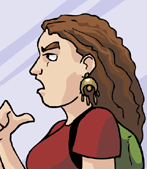 Stephanie Yes, this is me. I put myself in my own comic. How clever! Anyway, I'm your usual sarcastic, pessimistic, artistic geek-chick who hates cheerleaders and jocks, and would like to someday see a herd of Tyrannosaurs decimate her school and devour everything in sight. Everyone knows someone like me, right? |