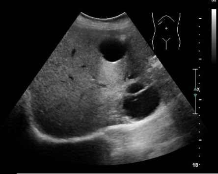 a lobe droit du foie . Ombre de hyperascoustique porterieure