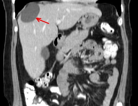 TDM du foie (n'a pas de contrast ) en coupe axiale |