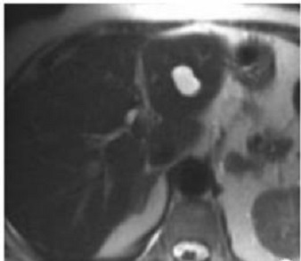radiologique IRM de kyste du foie : Image lesionel arrondie