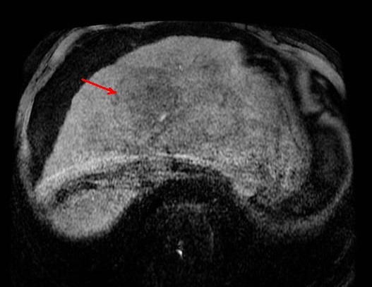 est isointense du foie droit ( fleche rouge ) . Foie