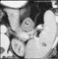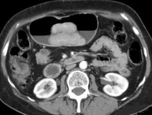stenose de l' estoma ( image TDM en coupe axiale ) .N'a
