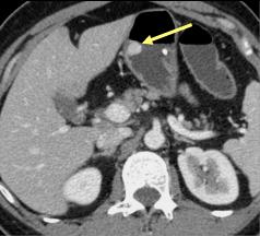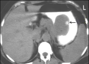 hyperdense non homogene . Paroie de l;estoma reste