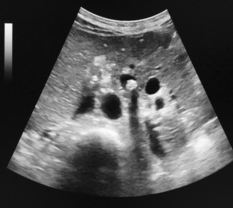 Image hyperechogene d'une lithiase de voie
