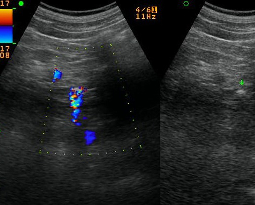 hyperechogene se voyait tres nette avec cone