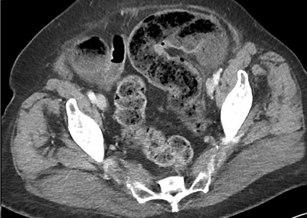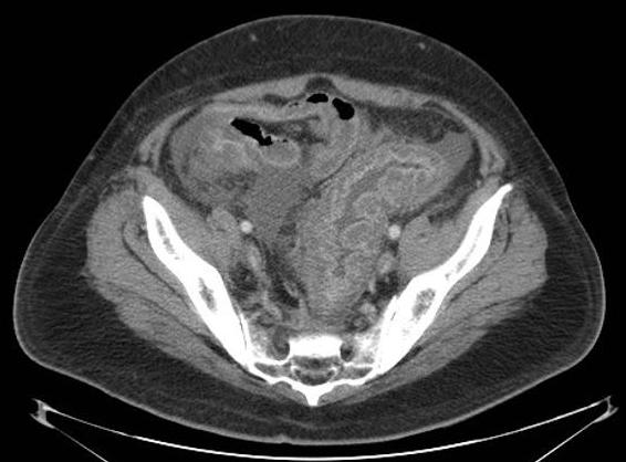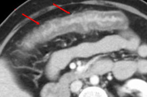 colon sigmoide d'une colite pseudomembraneuse . TDM