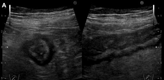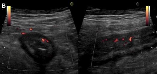 Aspect epaissisement oedemateuse hypo-echorich de la