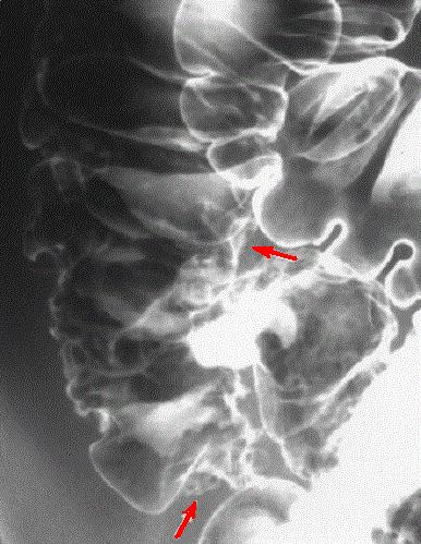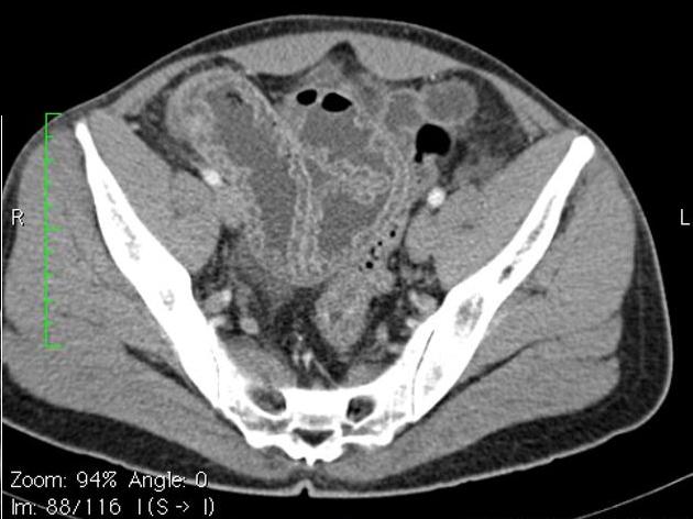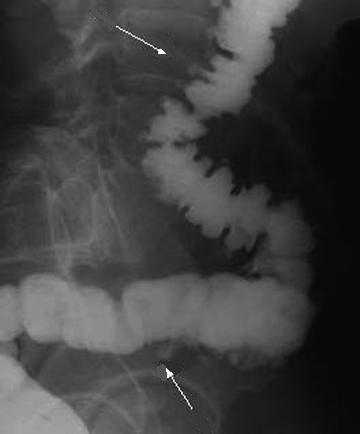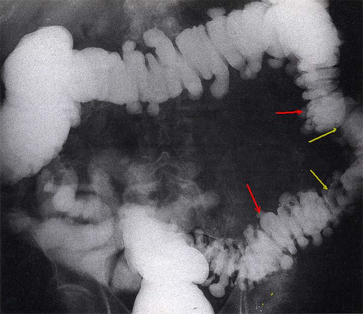Epaississement de la paroi de ileon . Lymphadenopathie peut se voyait sur cette