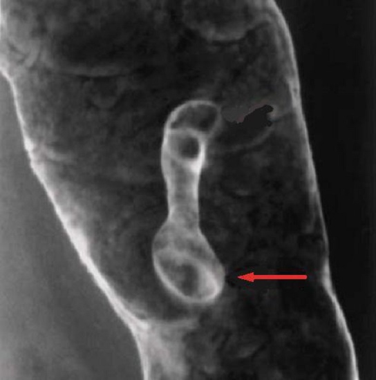 pedicule en forme du champignon ( fleche rouge ) |