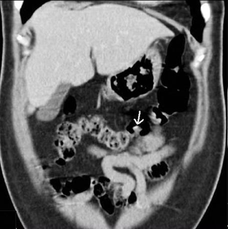 rehaussement intraluminale du colon ( fleche blanche